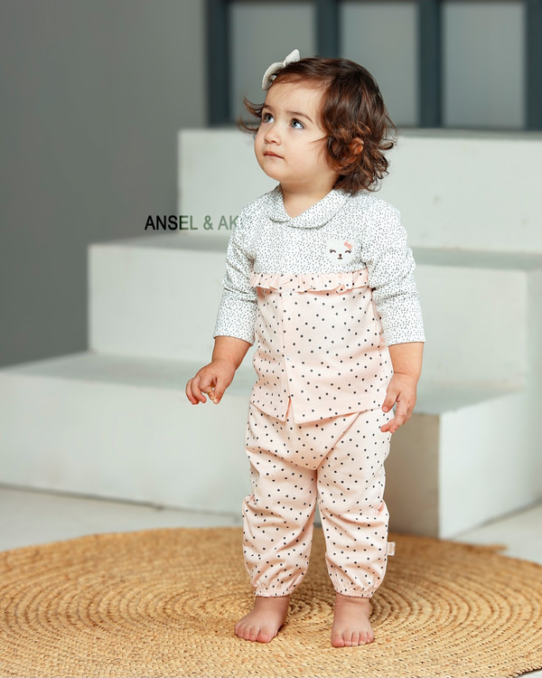 سرویس تیکه باز دخترانه مدل وندی رنگ گلبهی/استخوانی تمام چاپ خال گلدوزی کله خرس
