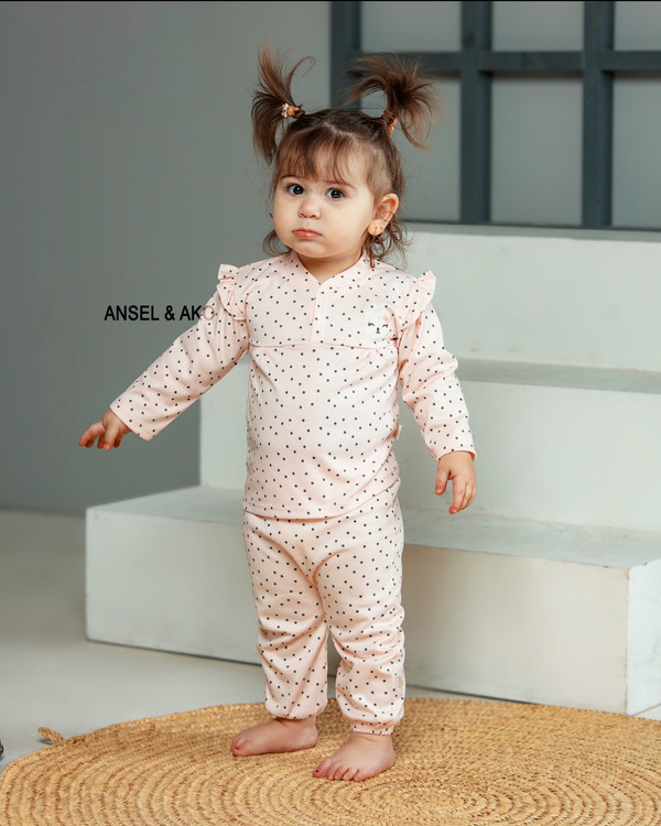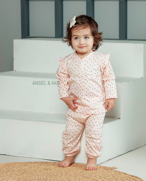 سرویس تیکه ای باز دخترانه مدل وندی رنگ گلبهی تمام چاپ خال و گلدوزی کله خرس