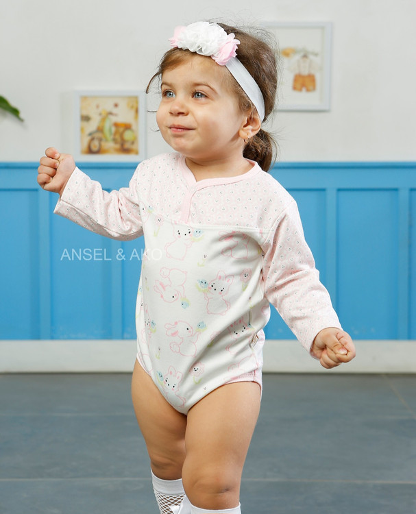 بادی آستین بلند دخترانه مدل خرگوش و گل