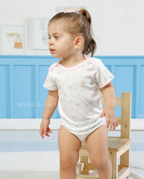 بادی آستین کوتاه دخترانه مدل خرگوش و گل